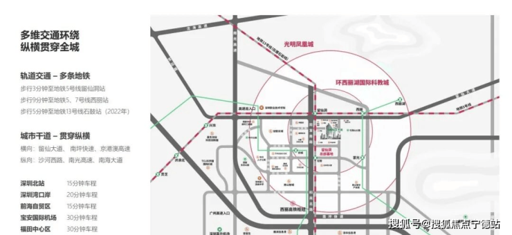 另有南光高速和粤港澳高速相邻,从交通上提升留仙洞总部基地于深圳与粤港澳大湾区的战略地位。
