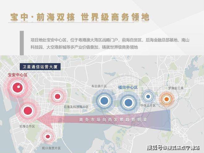 1、宝中·前海双核,世界级商务领地,商务市场向西发展趋势明显: