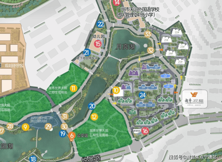 景观升级:越秀连片打造5.3万方日月双湖,规划为【世界湖城】,含盖【两湖一谷三桥七公园二十节点】