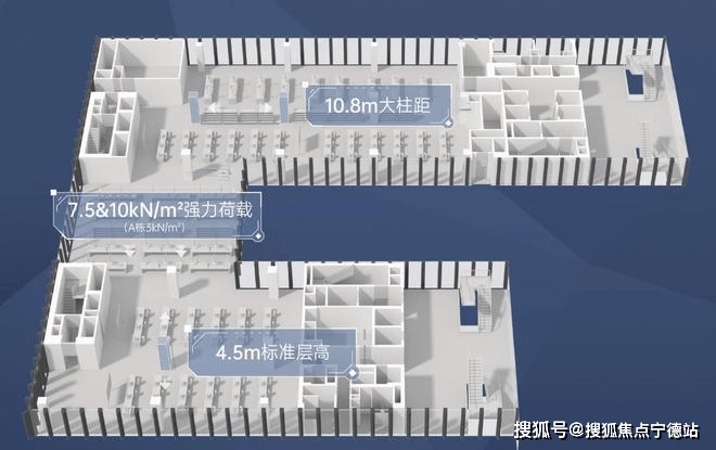 标准层高:约4.5m;空间柱距:约10.8m