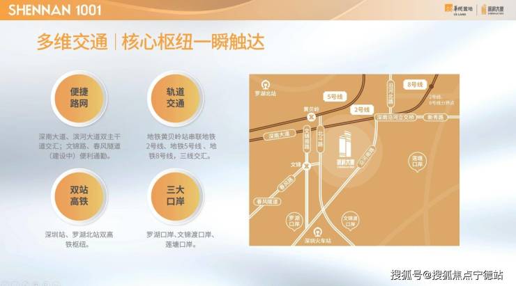 ①深南大道、滨河大道双主干道交汇,文锦路、春风隧道(建设中)便利通勤