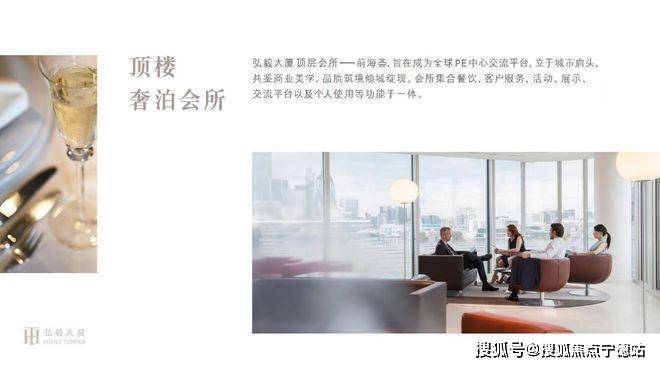 ⑨ 、顶层会所前海荟,弘毅大厦顶层会所——前海荟,旨在成为全球PE中心交流平台,立于城市肩头,共鉴商业美学,品质筑境倾城绽现,会所集合餐饮、客户服务、活动、展示、交流平台以及个人使用等功能于一体。