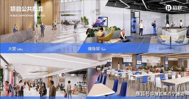 内部配套:挑高大堂、商业、健身房、餐厅、会议空间等;