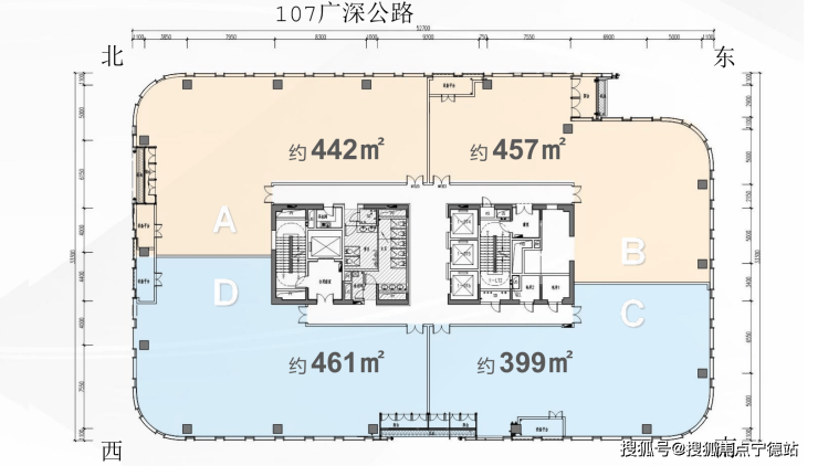 总建面:19.46万㎡(A、B、C座办公9.4万㎡+D座南太优舍2.4万㎡+商业配套1.64万㎡+公共配套3600㎡)