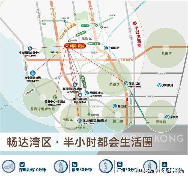 与南光高速、龙大高速、外环高速紧密相连,3分钟即可至南光高速出入口,30 分钟直抵宝安、南山、福田。