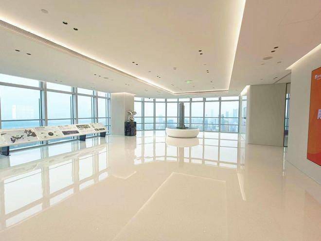 约11米层高,融合“光辉未来”设计理念,以充满能量的线性符号和天花模块群设计,打造核心大堂气派形象。