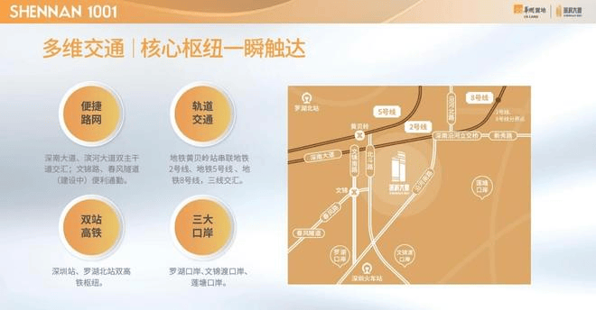 ①深南大道、滨河大道双主干道交汇,文锦路、春风隧道(建设中)便利通勤