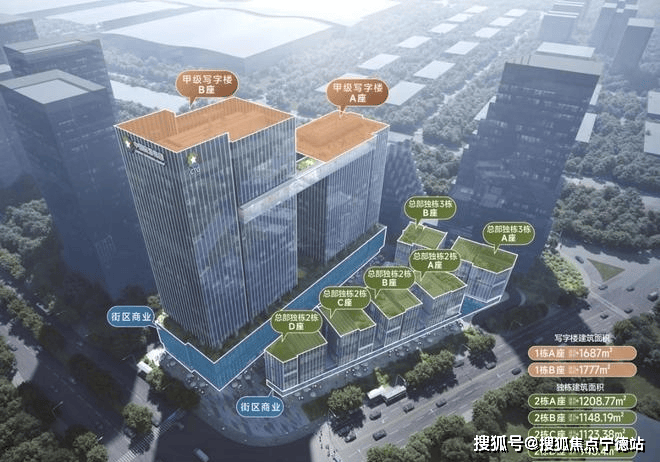 标准层面积:A座约1687m²,B座约1777㎡