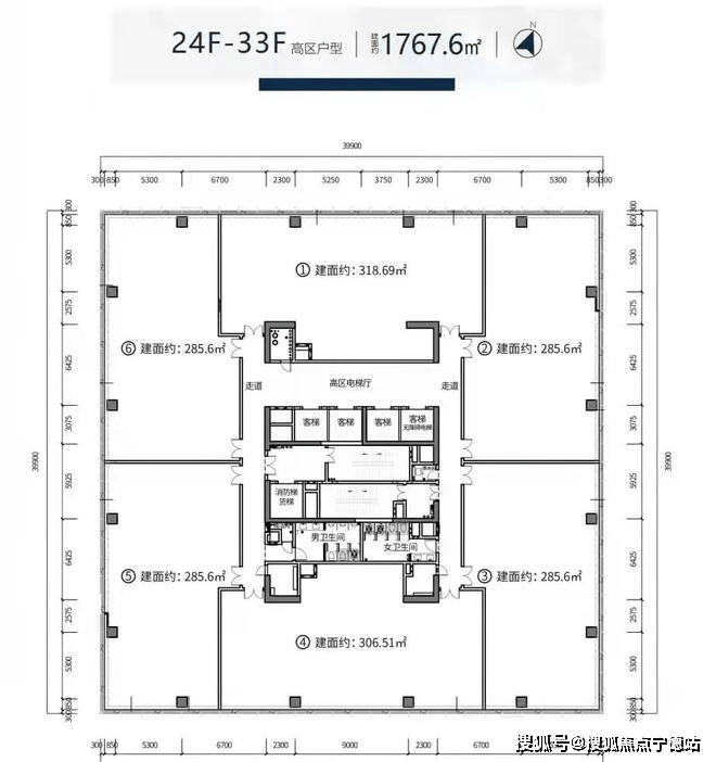 电梯:6客梯+1消防梯,载重1.6-2吨