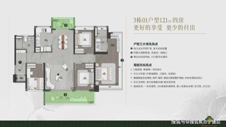 ④、出售面积:121平米4房2卫2厅,总价608万起