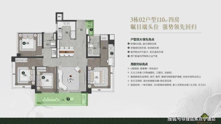 ②、出售面积:105平米4房2卫2厅,总价568万起
