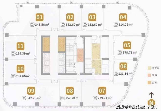 约11米层高,融合“光辉未来”设计理念,以充满能量的线性符号和天花模块群设计,打造核心大堂气派形象。