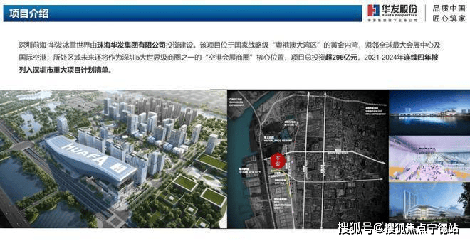 项目由珠海华发集团有限公司投资建设,位于国家战略级“粤港澳大湾区”的黄金内湾,紧邻全球最大会展中心及国际空港;所处区域未来还将作为深圳5大世界级商圈之一的“空港会展商圈”核心位置,项目总投资超296亿元,2021-2024年连续四年被列入深圳市重大项目计划清单。