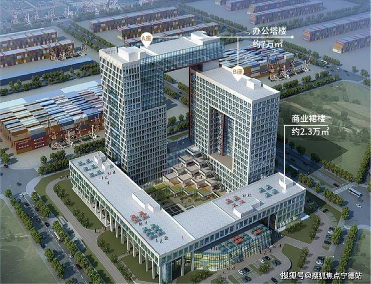 总建筑面积约15万m、 计容面积约10万m²,包括商务型办公约7.05万m² 、商业约2 .32万m²。