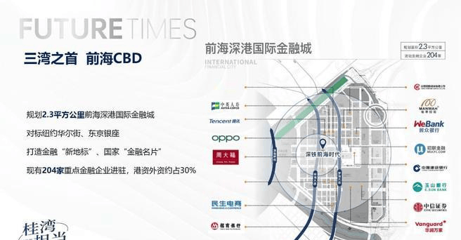 桂湾承载金融创新使命,打造国际金融中心+全球总部中心,规划约2.3平方公里前海国际金融城,已入驻239家重点金融企业。