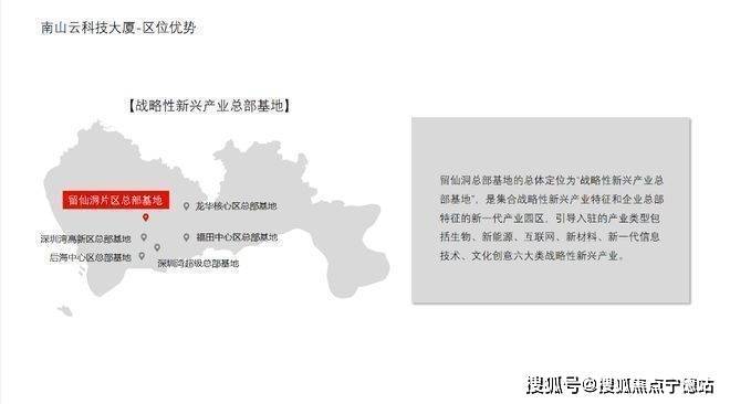 项目位于留仙洞总部基地,该总部基地定位为“战略性新兴产业总部基地”,是集合战略性新兴产业特征和企业总部特征的新一代产业园区,引导入驻的产业类型包括生物、新能源、互联网、新材料、新一代信息技术、文化创意六大类战略性新兴产业。