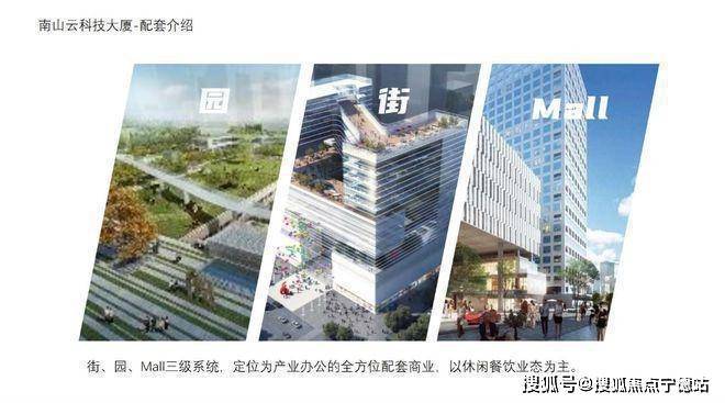 占地约40万㎡,总建面133.5万㎡,项目涵盖研发、办公、公寓、酒店、商业等多种业态,南山云科技大厦更是项目当中翘楚,其外观设计新颖而前瞻,周边配套齐全,是南山区域内最具创新活力的品质标杆写字楼。