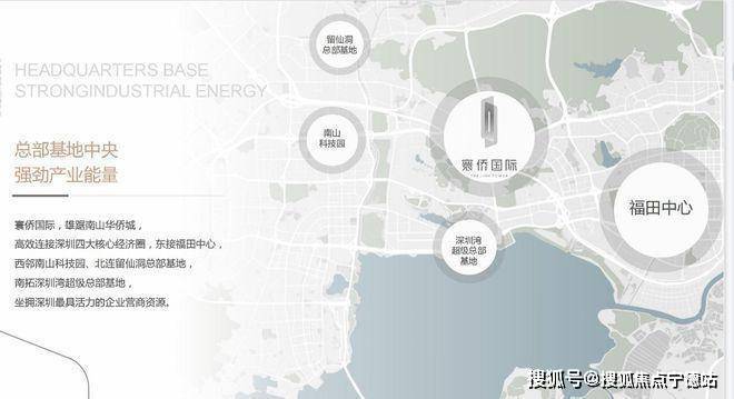 深圳城市核心区,侨香路总部商务产业带,前海、后海、超总湾、福田CBD环绕。
