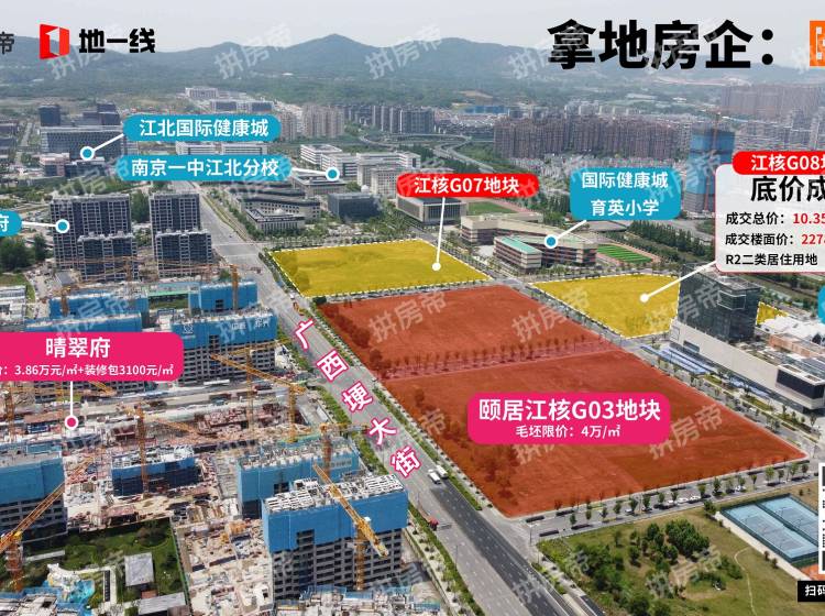 2022年7月,江核G08地块被颐居建设竞得,10.35亿元底价成交,成交楼面价22780元/平,不设毛坯限价。