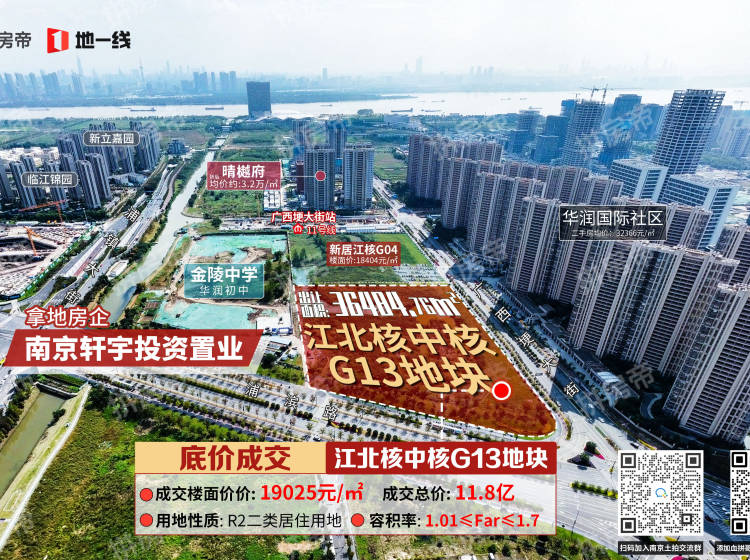 地块周边规划多幅教育用地,包括鼓楼幼儿园、一中等,北侧为今年2月确定将引入的金陵中学,将提档中央商务区的教育配套品质,满足片区教育配套需求。地块东南侧紧邻今年8月25日出让的江核G04地块,该地块由南京新居建设底价拿地,地块成交总价124000万元,楼面地价18404元/㎡。