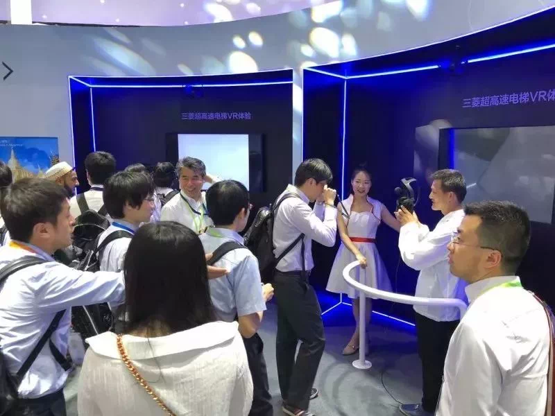 三菱电梯展台造型高雅大气、灯光绚丽夺目、展出内容精彩纷呈,可谓诚意满满、业界良心。自开展以来,参观者便是络绎不绝。