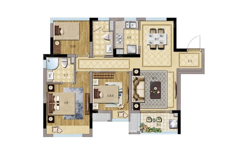 推荐户型:115平3室2厅2卫
