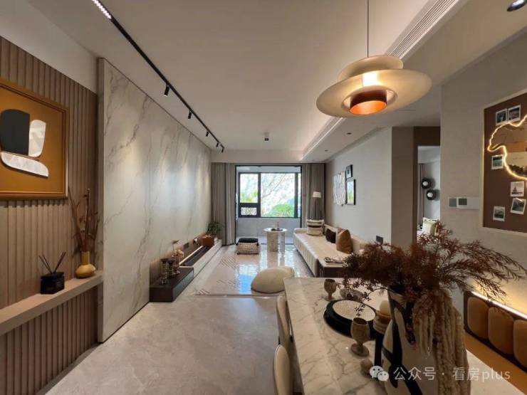 客餐厅地面从复合式木地板换成了地砖通铺,电视背景墙换成岩板。