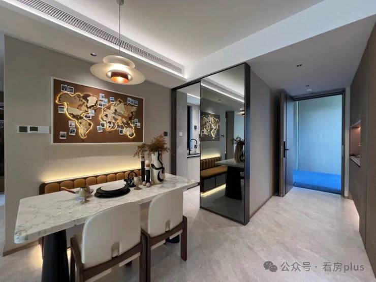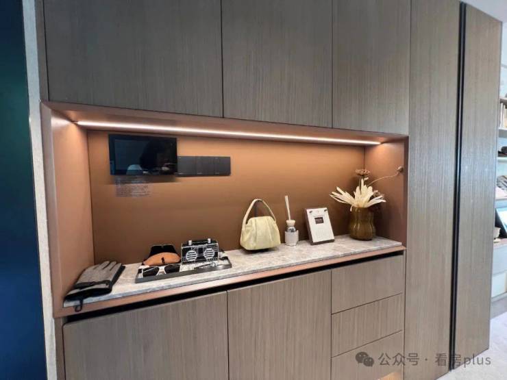 以建面约106㎡样板间为例,玄关柜升级,尺寸更大,收纳空间更足。
