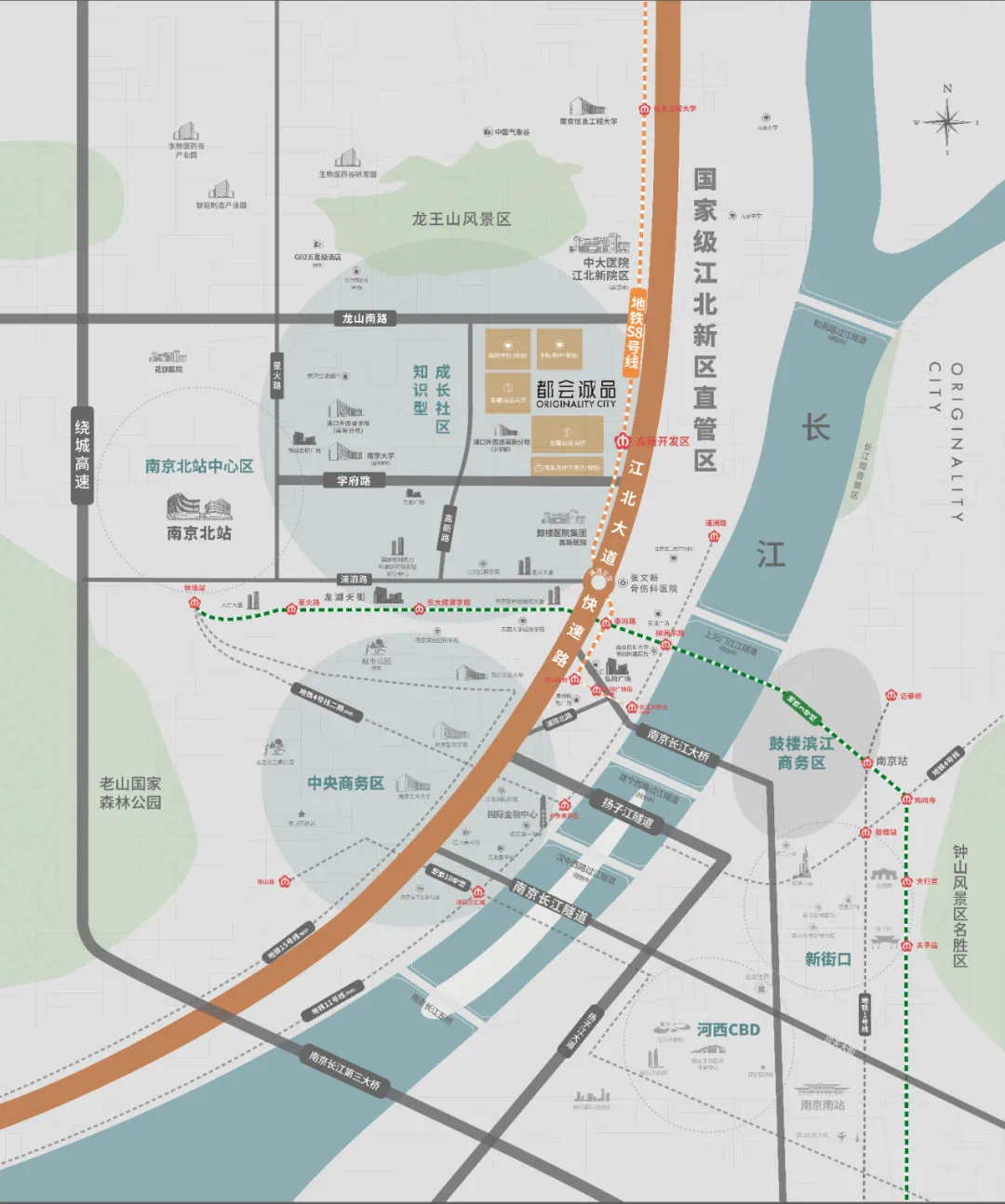 除了坐拥南京北站红利,项目距离地铁S8号线高新开发区站约500米,一站换乘地铁3号线,四站即可过江,12站即可到新街口!未来,S8南延线还将连接11号线(规划),交通越来越便捷。
