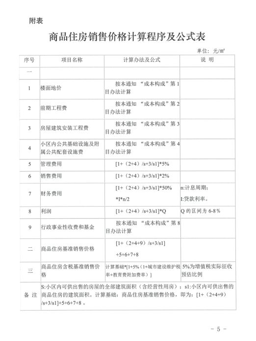 《通知》详细列明了成本的构成,包含楼面地价,前期工程费(规划设计、三通一平等),房屋建筑安装工程费(住宅土建(含基础)工程费、安装工程费等),小区内公共基础设施及附属公共配套设施费,管理费用,销售费用,财务费用,以及行政事业性收费和基金。