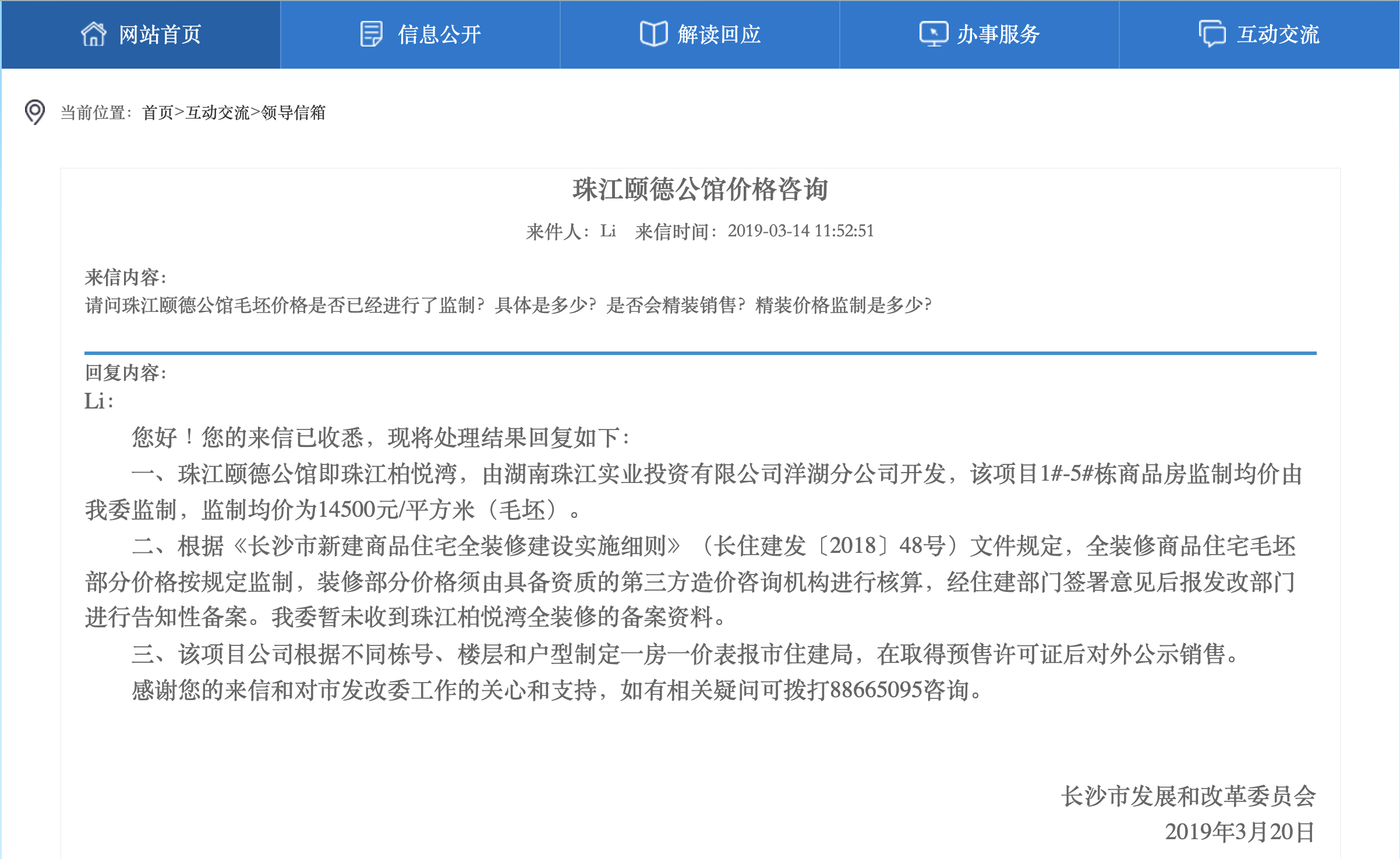长沙市发改委2017年11月30日曾在官网发布《长沙市限价商品住房价格管理暂行办法》,其中对限价商品住房的解释是,按合理标准建设、政府限制销售价格的商品住房,不含住保部门建设和提供的保障性住房。
