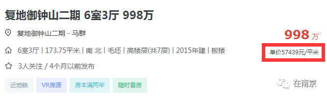 其中的住宅组团,叫紫金观邸。也是个销售周期长达近5年的“倒挂神盘”。直到今年1月中旬才“很不情愿”地收官。最后一批毛坯尾房均价2.7万/㎡,小区二手房挂牌3.1万-3.3万/㎡。不仅远低于对面的复地大平层,甚至在隔壁的顾家营面前也抬不起头来。