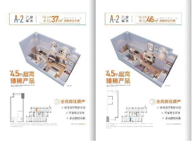 该产品面积段约为 29-60㎡,主力户型为建面约37㎡和46㎡,总价不高,投资门槛相对较低。对于资金有限的投资者,是进入核心地段的绝佳选择。