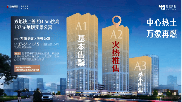 万象天地A2号楼华荟公寓即将紧急加推,准现房销售,缩短资金沉淀周期。