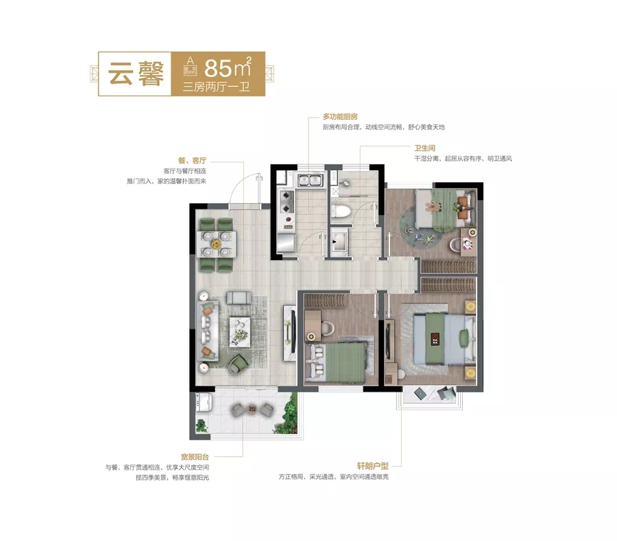 如意名邸则推出了85平、108平两种户型。