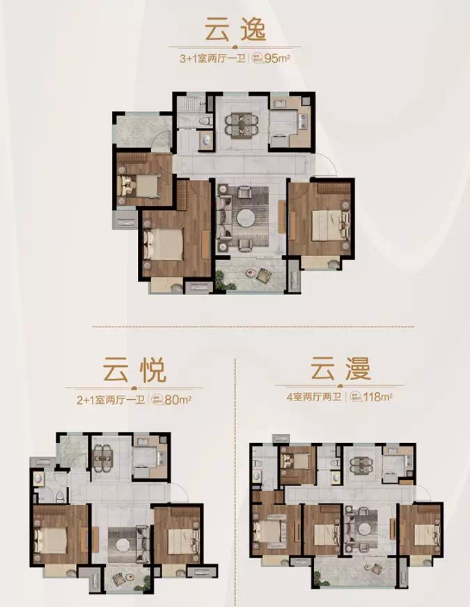 在房型上,如意郡一共推出了三种房型,分别为78平、90平、108平。