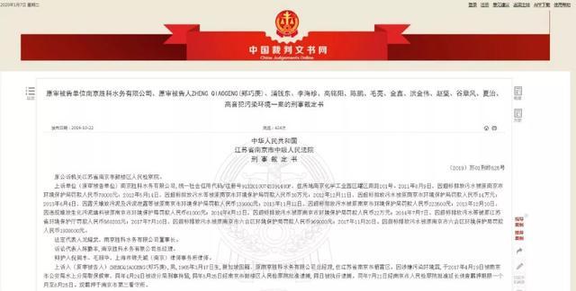 日前,南京市中级人民法院评选了2019年10大典型案件。其中一起为,南京胜科水务有限公司(统一社会信用代码/注册号91320100745391480F,住所地南京化学工业园区罐区南路101号)多次接收企业的高浓度废水,未经处理直排长江。其间,还人为篡改监测数据,逃避环保部门监管,最终,涉事污水处理公司被判处罚金和赔偿的环境修复费用达5.2亿元。