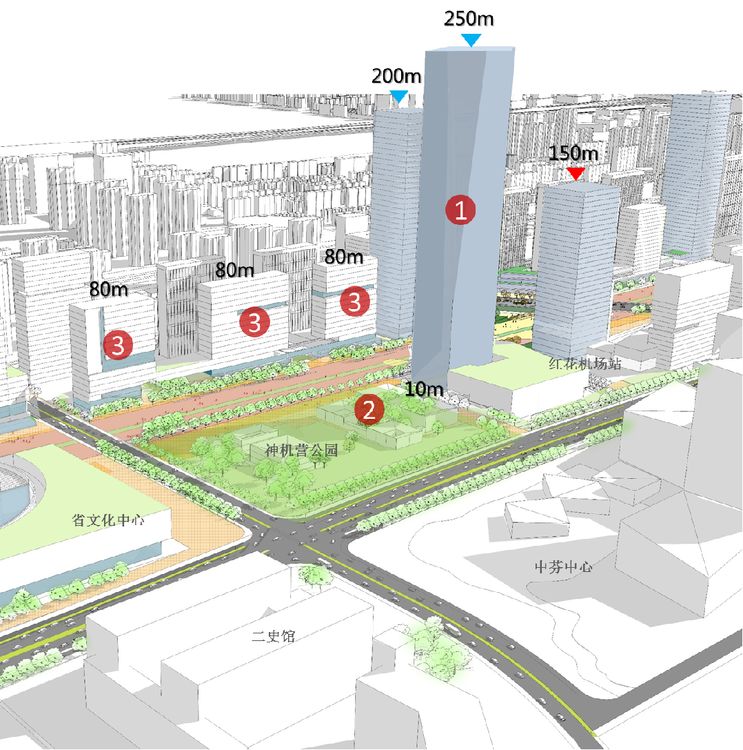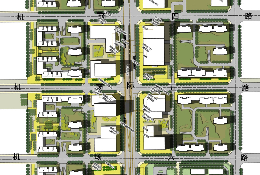 该地块位于机场跑道东部,依托滨水资源和超高层甲级办公,打造新型文体服务企业集群。