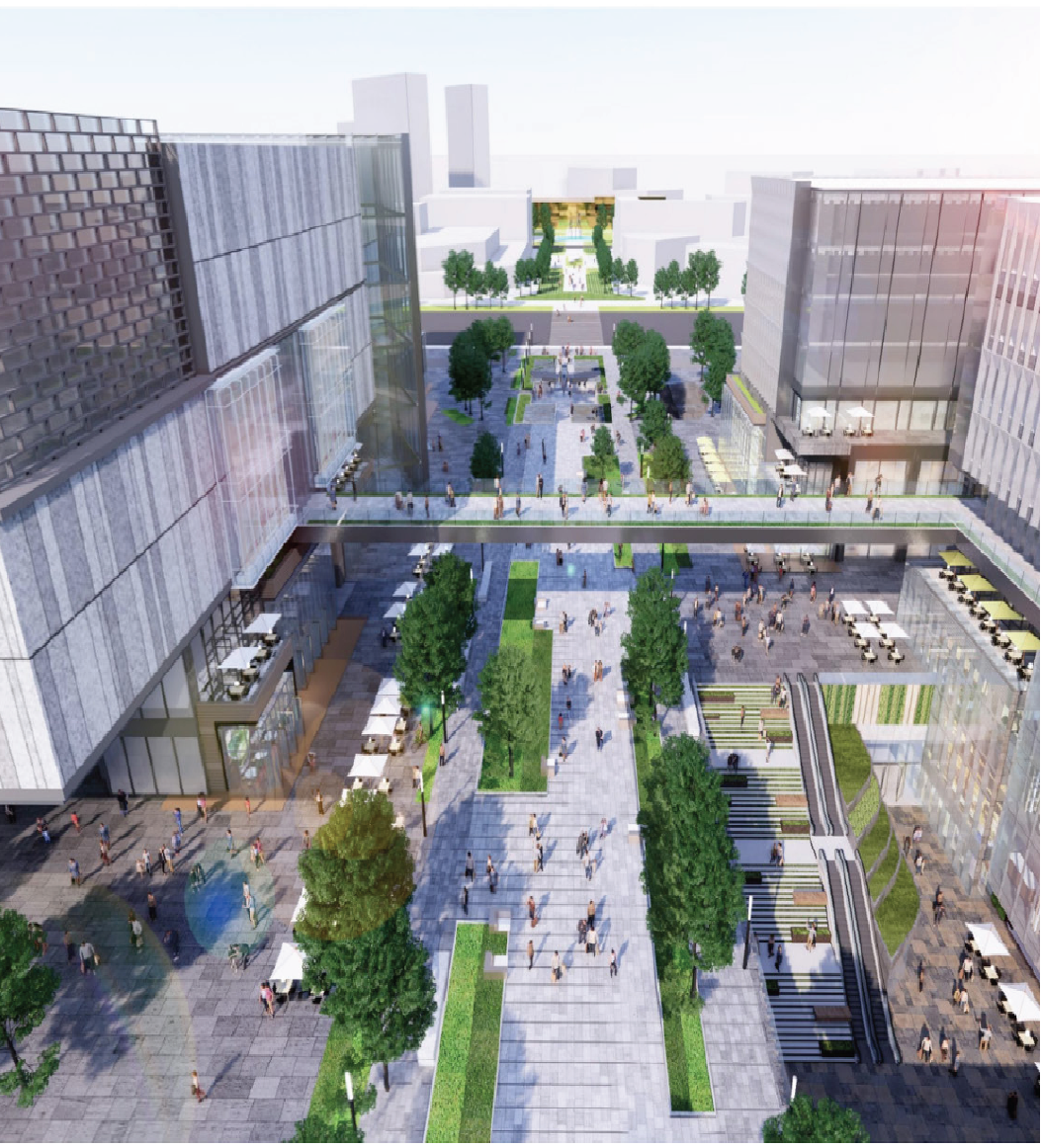 △第二历史档案馆新馆三是以TOD模式为引领,建设紧凑城市。“以公共交通为导向”统筹地上地下一体化设计,开发建设六条地铁线共十个站点,其中三个是两线或三线换乘站。