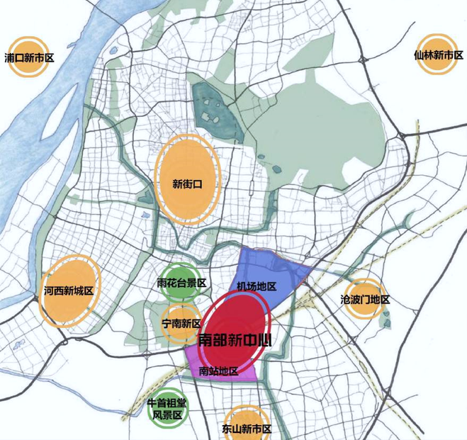 △南部新城与新街口、河西新城构成主城中心体系