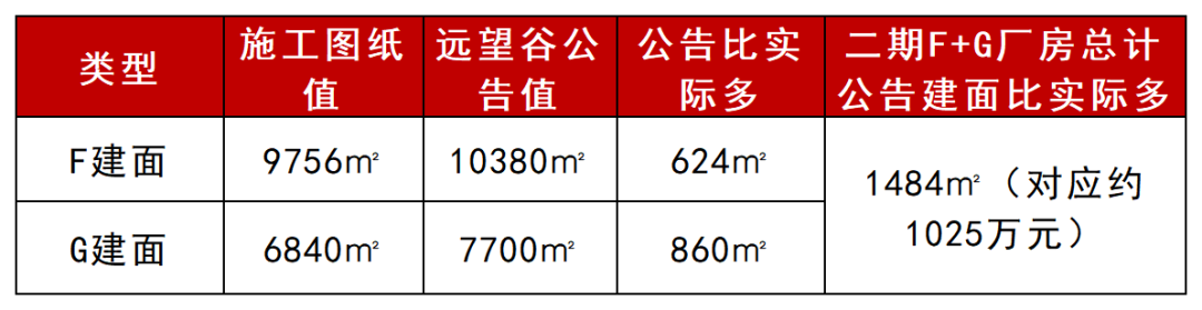 (2)工程施工图F、G建筑面积比远望谷公告的总建筑面积少1484㎡;