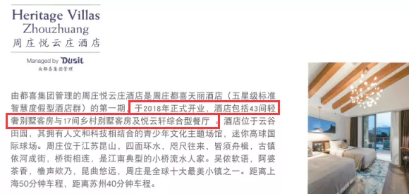 然而,远望谷所称的A2区域27间客房于2019年11月底才由商业改造为酒店的说法,与酒店介绍手册矛盾,其官方宣传手册介绍:周庄悦云庄酒店在2018年9月28日,一期60间客房便已经全部开业。