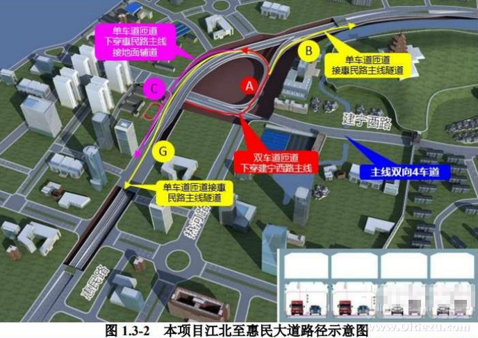 而“腾空”出来的,不,是推倒重来的大片净地。将作为建宁西路过江通道江南连接线(惠民大道综合改造工程)开挖施工的“主场”。未来,江北江南双主城之间的车流路径走向,可以参考以下示意图。