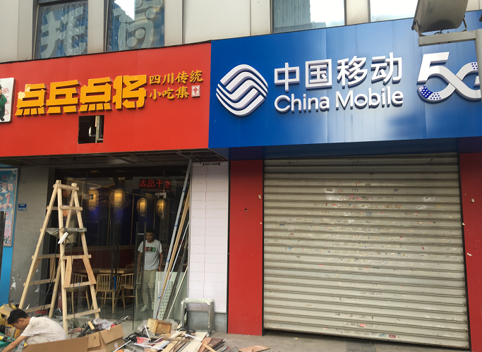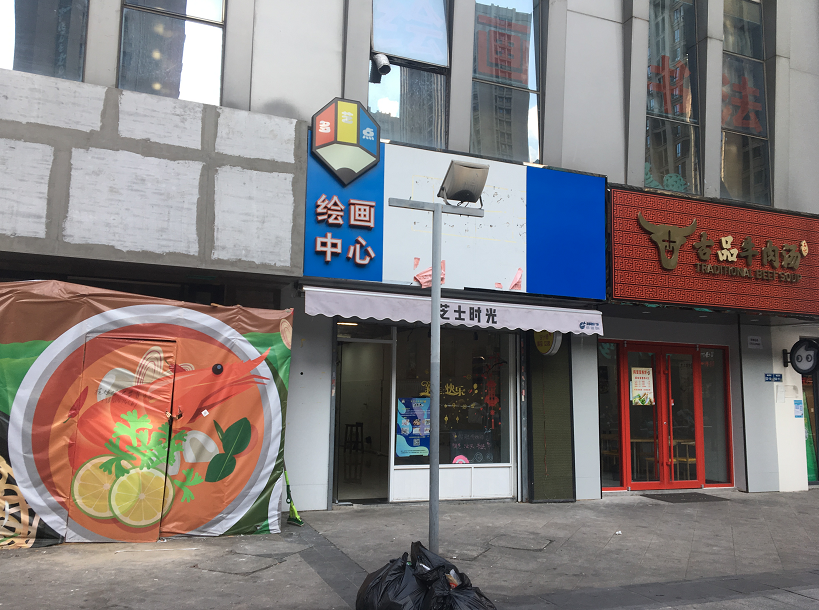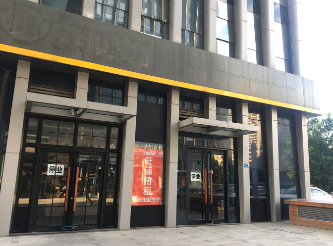 在万达某栋写字楼楼下,好几家门店都已经撤店,也不乏很快有其他商家立马接手的,正在装修待开业中。
