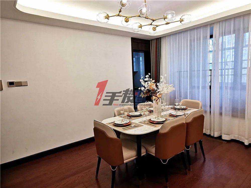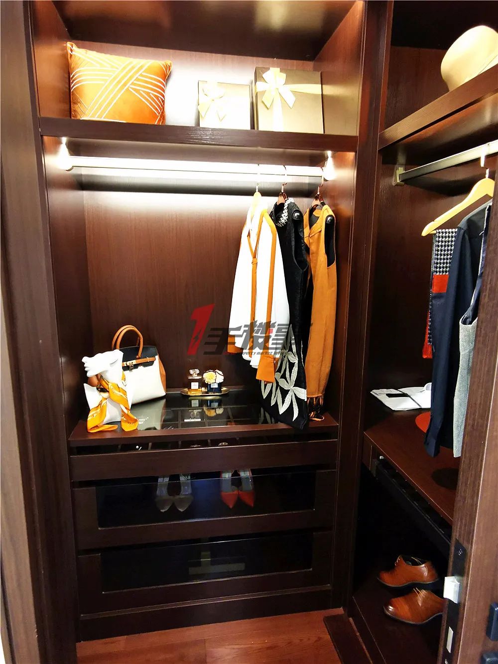 东边户型样板间同样是三房两厅两卫设计,三开间朝南,主卧(带独立卫浴和衣帽间)、次卧在客厅的两边,北边房间同样与北阳台相连,。U型厨房位于餐厅西边,客厅连通着南向大阳台。