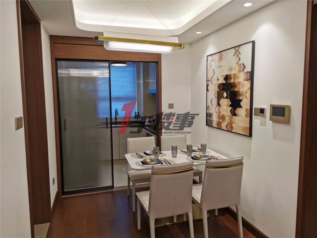 从售楼处了解到,海玥华府预计三季度首开,户型面积约90-140平,户型图还没释放。此前,项目放风价3.5万元/㎡(最终价格以销许价为准),与附近的万科金域国际相当。作为现房销售项目,实体样板间是关注的重点。海玥华府样板间在与售楼处紧挨着的西侧楼栋中。