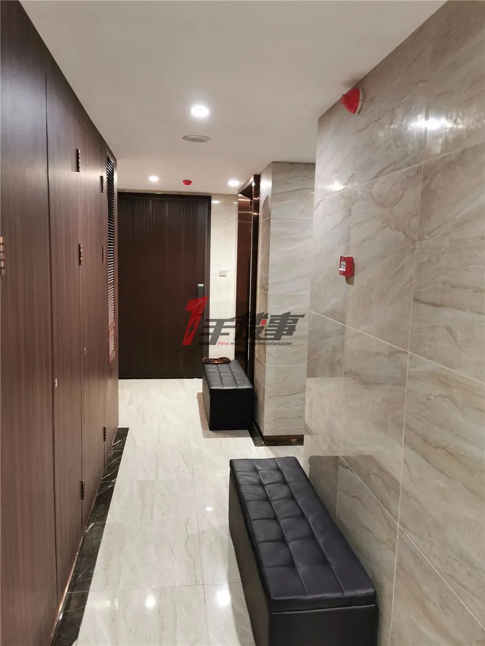我们首先来到精装修样板间,一睹为快。样板间展示区已经建成,楼道宽敞明亮,建成后中建会有防火门隔档,实际上就是一梯一户设计。
