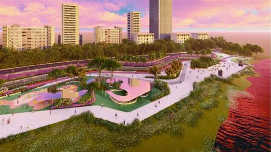 人在岸上走穿行入画中如此漂亮的江边公园期待早日完工