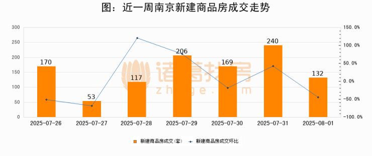 根据南京市住房保障和房产局数据显示,2025年08月01日南京新建商品房成交132套,较昨日减少108套,环比下降45%。近一周南京新建商品房日均成交156套。08月01日单日成交132套,低于近一周平均水平15.4%。