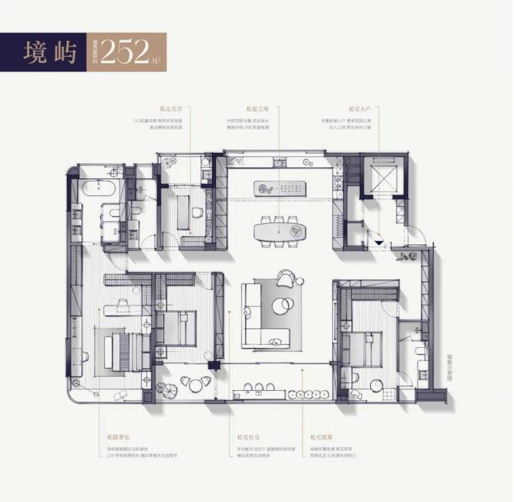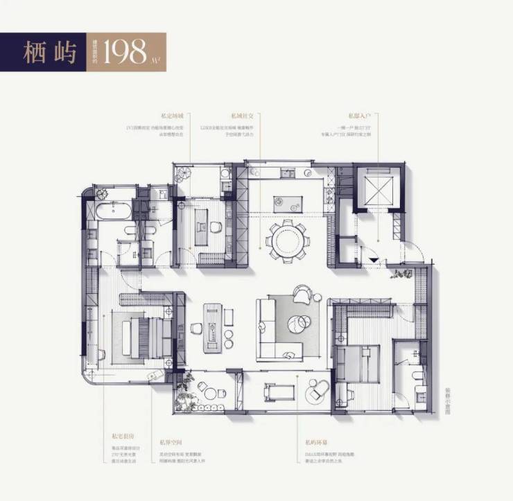 主力户型为建面约198、252㎡两大超级大平层户型,仅130户,一梯一户设计。户型结构上,198㎡的可以做三房也可以做四房,252㎡的可以做两房、三房、四房。